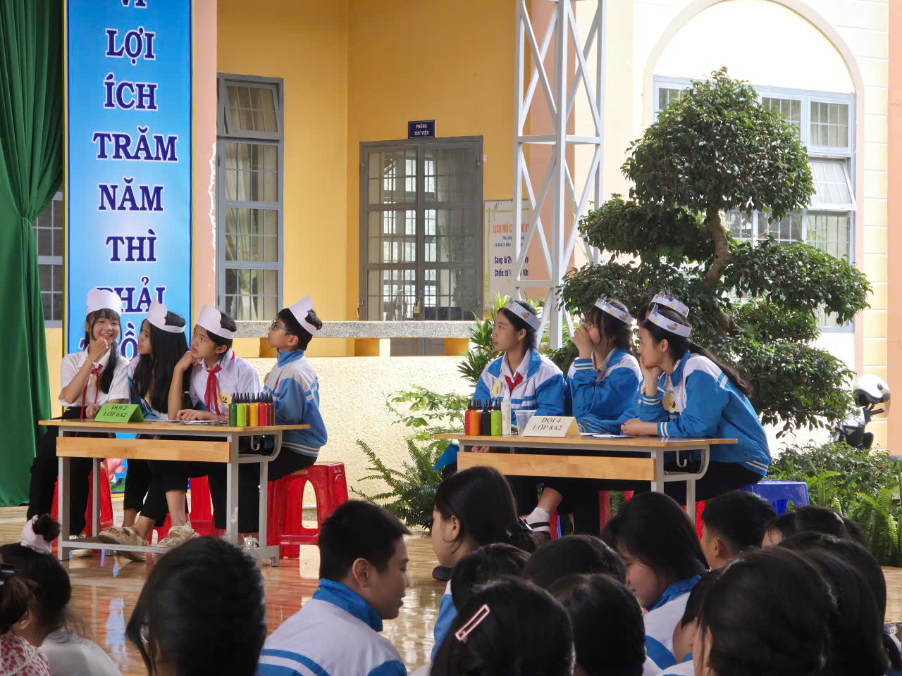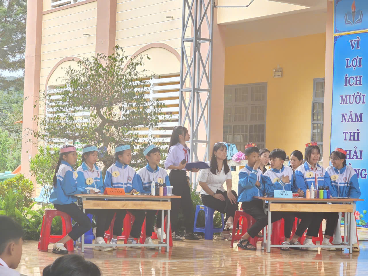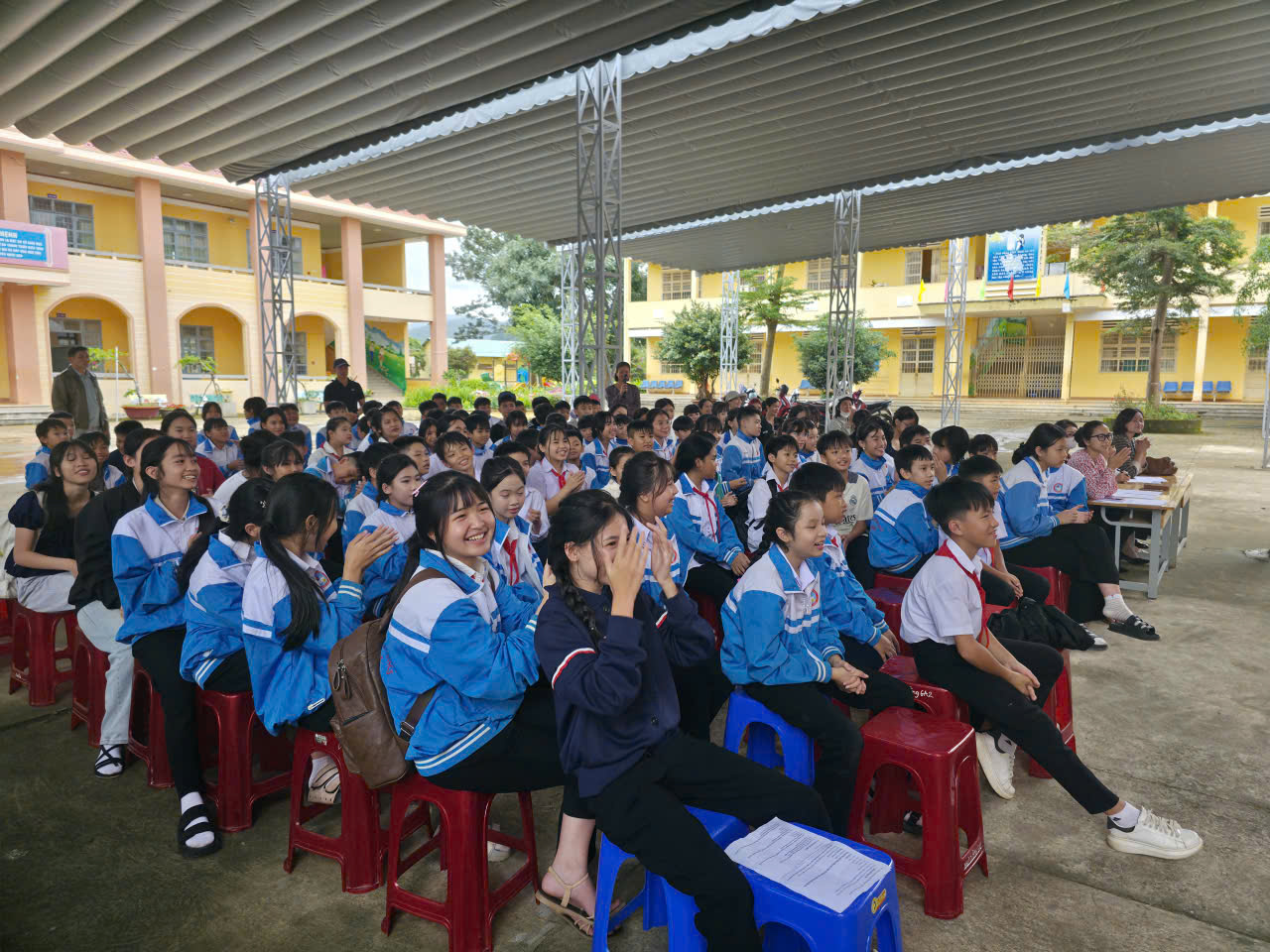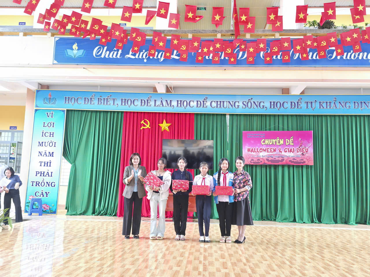 Buổi sinh hoạt có sự tham dự của Ban Giám hiệu nhà trường, toàn thể thầy cô giáo khối THCS cùng 100% học sinh khối THCS. Sự hiện diện đông đủ và nhiệt tình của thầy trò đã tạo nên một không khí vui tươi, náo nhiệt và đầy ý nghĩa.