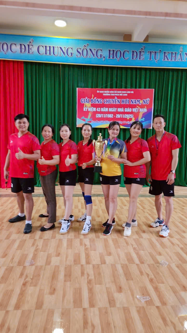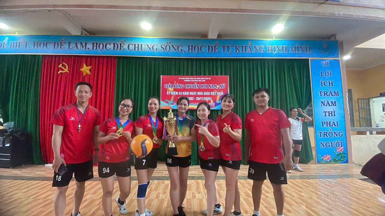 Hòa trong không khí thi đua sôi nổi của cả nước hướng về kỷ niệm 43 năm Ngày Nhà giáo Việt Nam 20/11 (1982–2025), chiều ngày 19/11/2025, tại sân trường TH&THCS Mê Linh đã diễn ra Giải bóng chuyền hơi nam – nữ với sự tham gia đầy đủ của cán bộ, giáo viên và nhân viên nhà trường. Đây là hoạt động thiết thực nhằm tạo sân chơi lành mạnh, tăng cường sức khỏe, gắn kết tập thể và thể hiện tinh thần đoàn kết, giao lưu trong toàn trường.